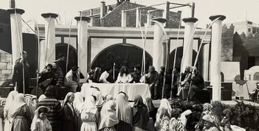 Para nosotros es un honor destacar el interés que por esta representación mostró el compositor D. Manuel Palau y sobre todo su colaboración al escribir la partitura de la Santa Cena y otro cántico para interpretar al término del Sermón de la montaña.