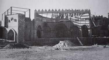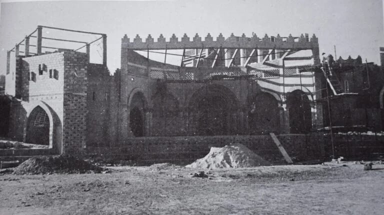 Con este mismo fin, y para contribuir una mayor perfección, al tiempo que se disminuía el esfuerzo de montaje se construyeron edificaciones de fábrica, en cuya construcción tomo parte de manera directa la comisión de escenografía, más conocida como la “tatxa” y que desde un principio, primero en montajes de cartón y madera y después en obras de ladrillo y de cemento, contribuyó de manera decisiva al desarrollo de nuestras representaciones.