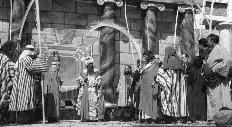 Cabe destacar el esfuerzo realizado por tantas mujeres y jóvenes que con gran entusiasmo iban turnándose para tejer los trajes que pasarían a ser propiedad del Misterio de la Pasión. Túnicas, mantos, trajes para los sumos sacerdotes, mitras…